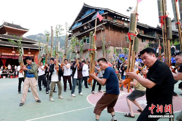图为公众正在吹芦笙。龚普康 摄